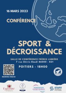 Jeudi 16 mars, venez assister à la conférence "Sport & décroissance" organisée par le Master Management du Sport de la Faculté des Sciences du Sport de Poitiers.