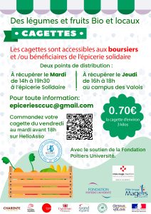 La cagette a une valeur marchande de 7 € et est proposée au prix de 0,70 € aux étudiants bénéficiaires de l’Épicerie et/ou aux étudiants boursiers. La Fondation Poitiers Université finance la différence.
