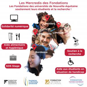Retrouvez « les mercredis des Fondations des Universités de la Nouvelle Aquitaine » sur nos réseaux sociaux : Twitter, Facebook et LinkedIn.